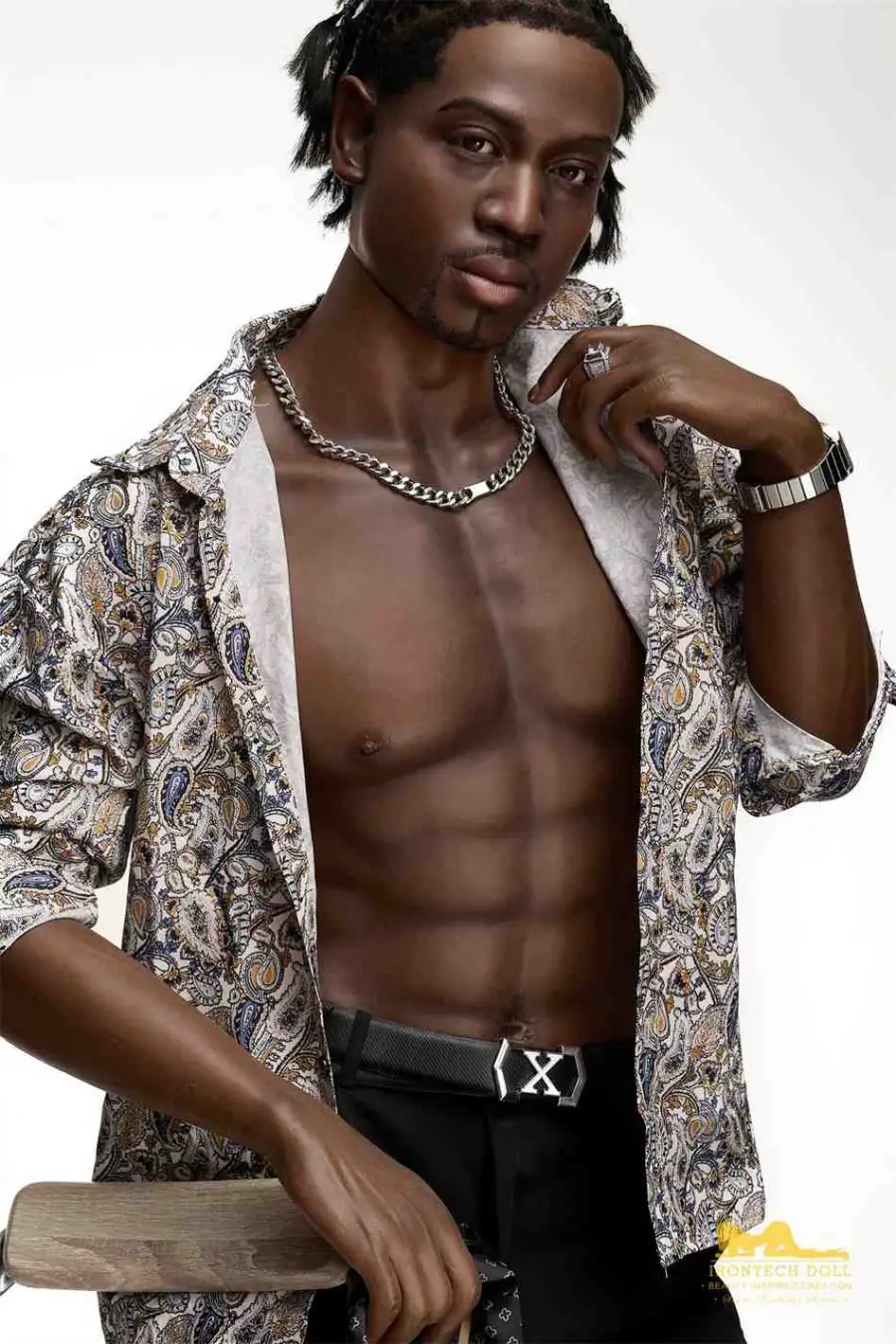 Turn up the heat with our Lifestyle Male Sex Doll, a luxurious 176cm ebony masterpiece that redefines masculinity and elegance. Dressed to impress in designer-style attire, this Sexy Black Male Doll oozes charisma and confidence. From his sculpted six-pack abs to the sultry stare beneath his stylish hat, he’s the perfect combination of fashion and fantasy.