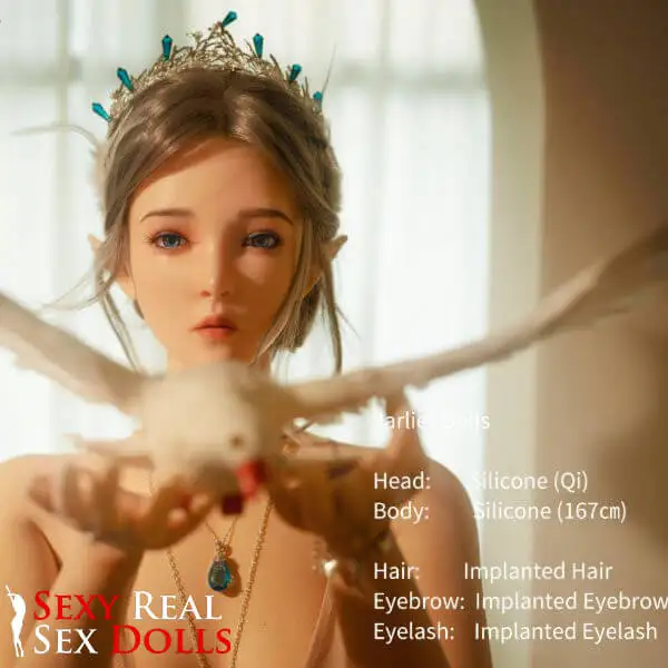 With her delicate facial features, fair skin, elven ears, and flowing gown, she looks like a goddess from another realm, the perfect Fantasy Sex Doll for those who desire a romantic, otherworldly experience. Whether she's painting, playing violin, or simply gracing your space with her presence, this Artistic Girl Sex Doll radiates calm, kind charm and beauty.
