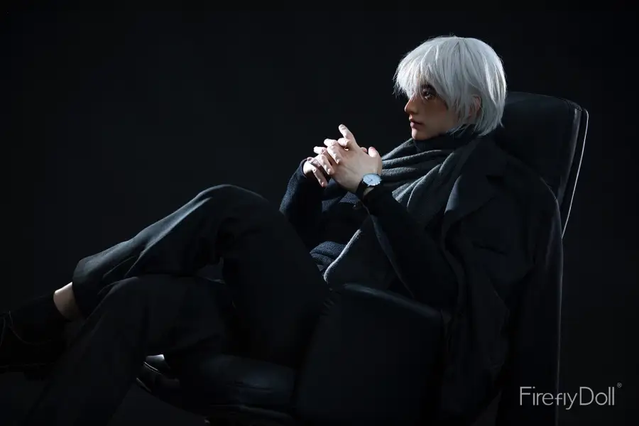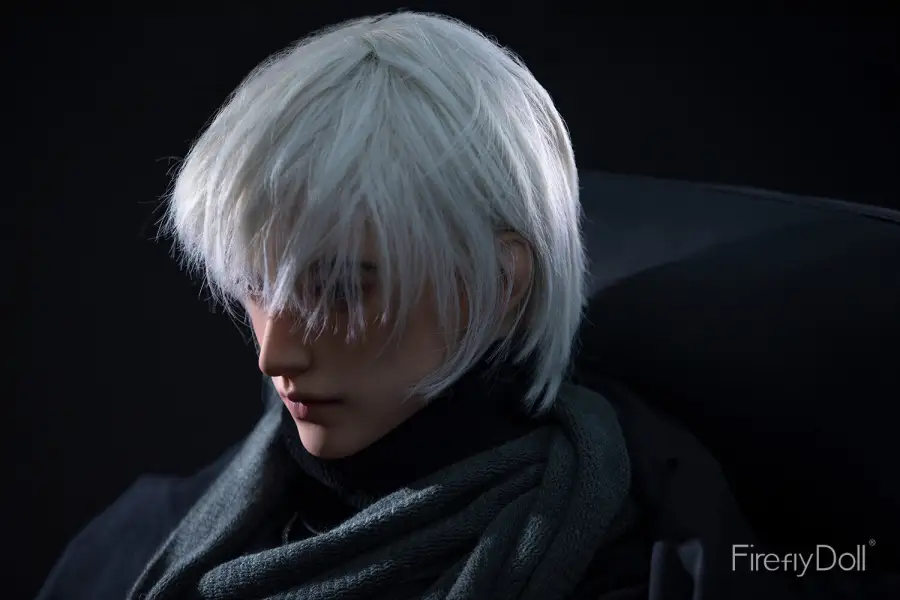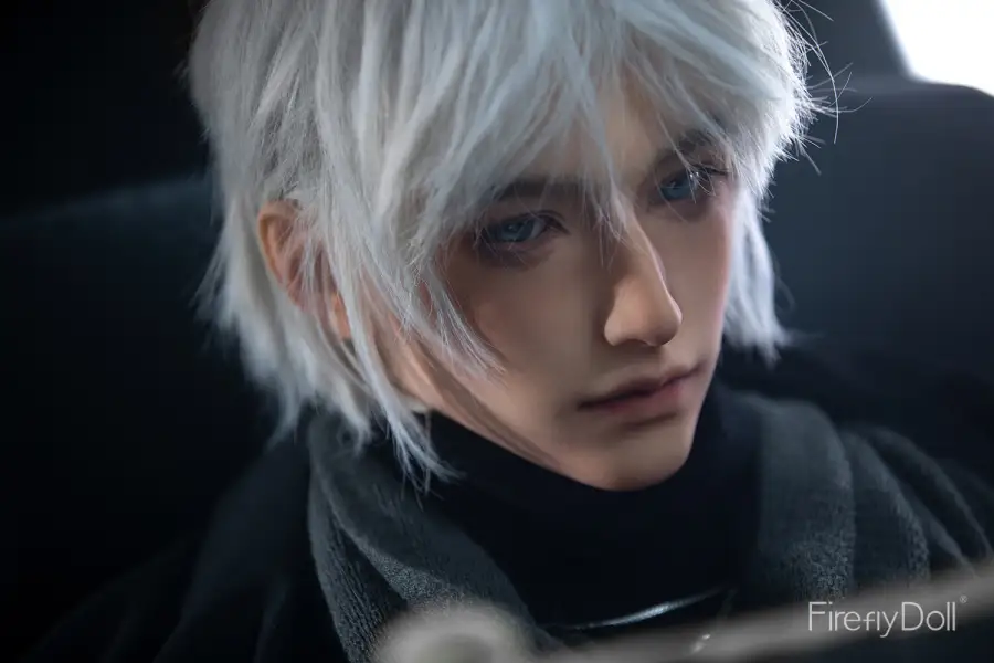 Crafted from high quality silicone, Jiang Ling features a natural skin tone with a soft, lifelike texture that enhances realism to the touch. His white hair, sharp facial contours, and introspective expression create a sensual, enigmatic aura inspired by male Asian fantasy aesthetics. The lean yet muscular physique highlights smooth chest lines, a narrow waist, and balanced proportions, perfectly capturing the essence of a gentleman sex doll with a mysterious edge.