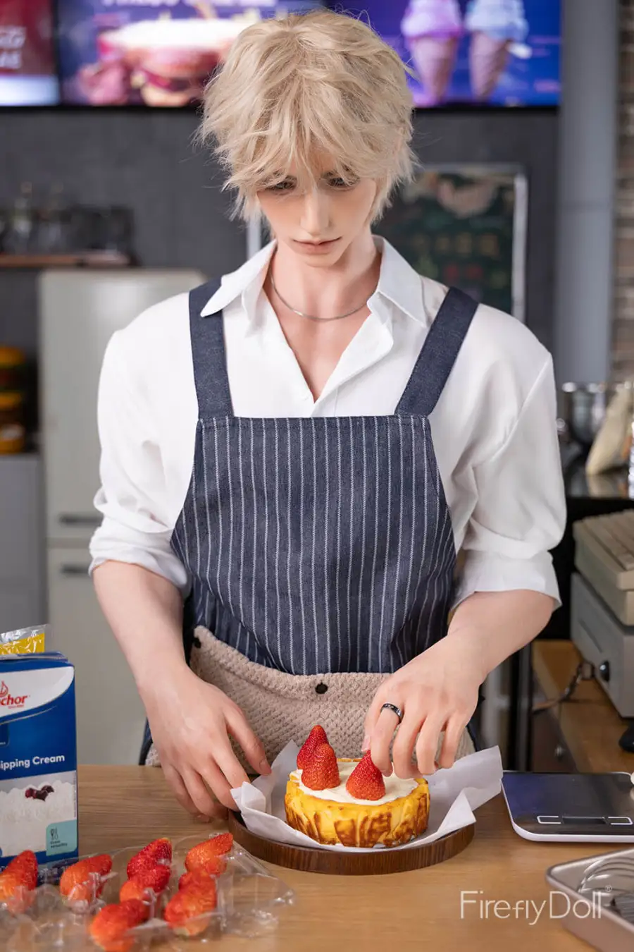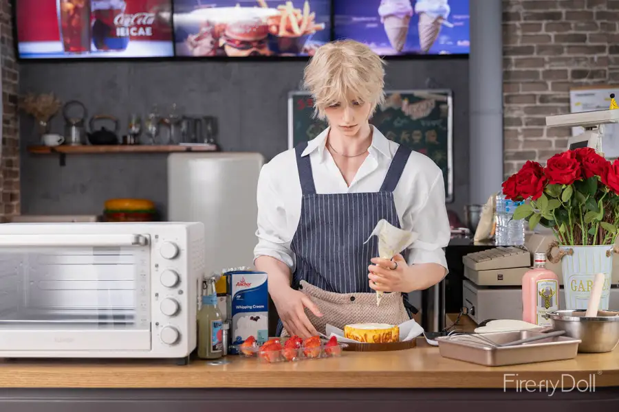 Meet Jiang Ling, a 180cm (5ft9”) Silicone Sex Doll designed to embody refined masculine charm, quiet confidence, and irresistible fantasy appeal. Inspired by the image of a handsome pastry chef, this male doll blends elegance and sensuality, making him the perfect choice for those drawn to a gentleman sex doll with an exotic, romantic presence.